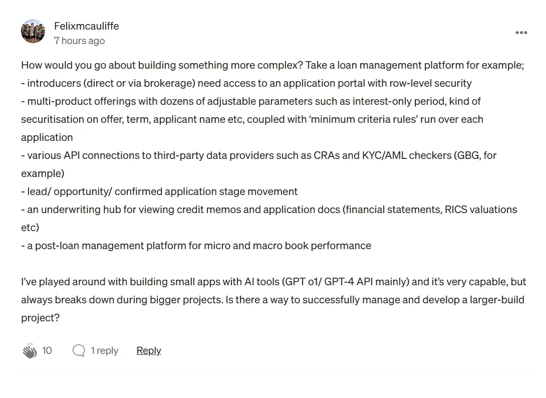 • “构建一个贷款管理平台的后台” — 不怎么样