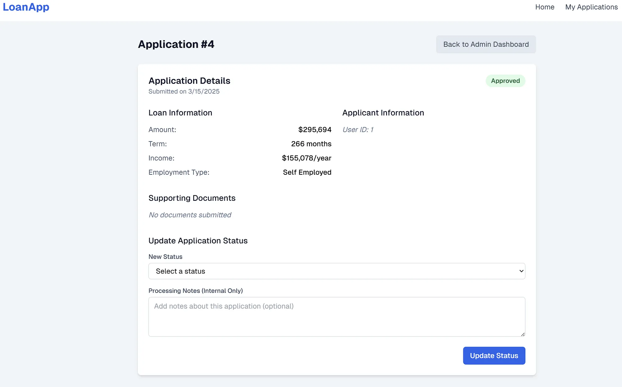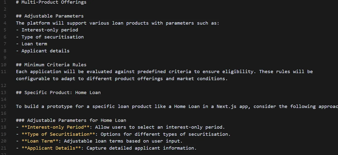 上面生成的文档是基于第一个提示,这只是一个开始。从这里我们可以开始构建一个管理平台来处理申请。