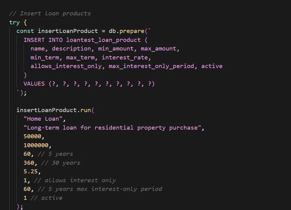 • “生成一个 TypeScript 接口来配置贷款产品” —