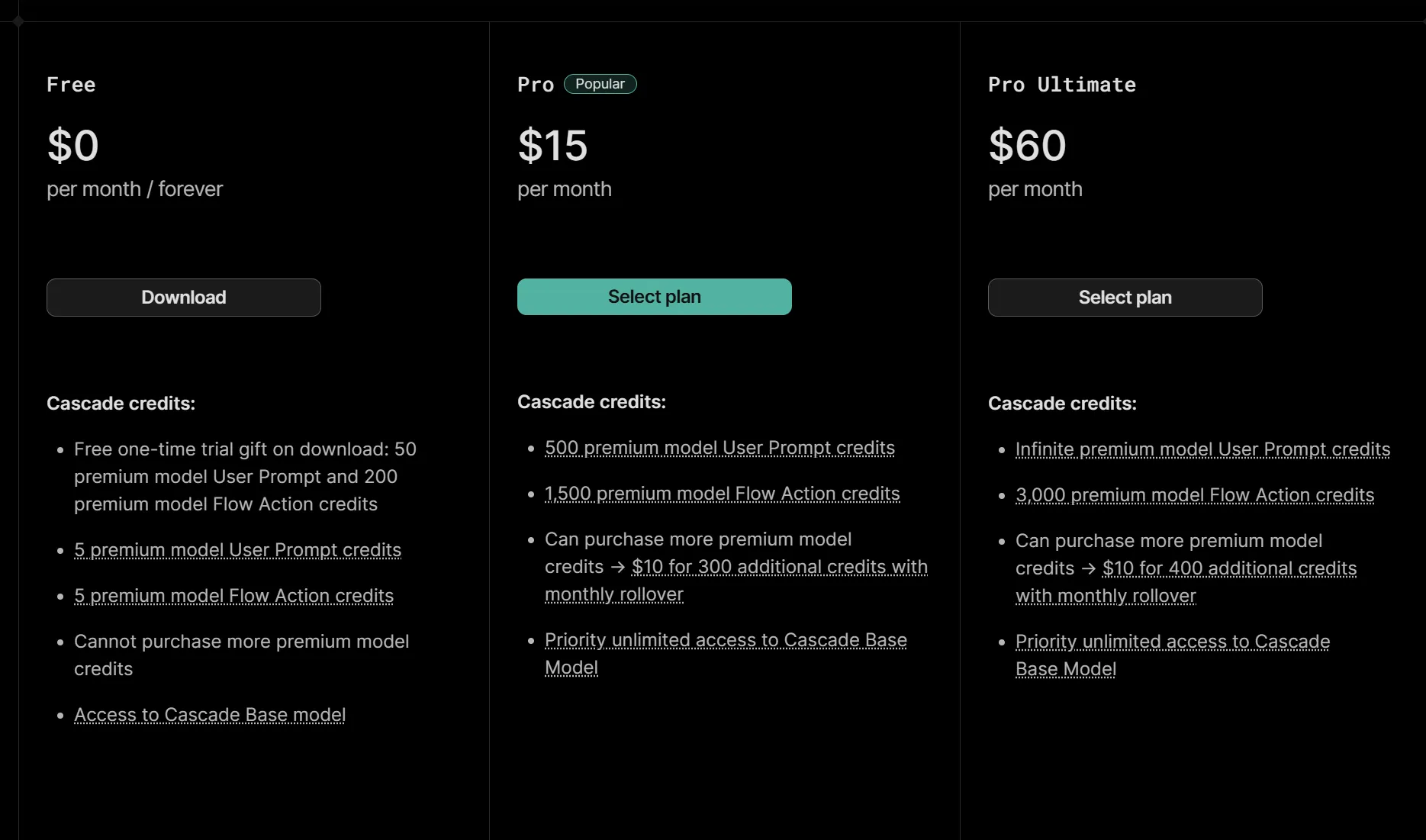 我对Windsurf有一个问题。我非常不喜欢他们的定价策略。他们一开始看起来比Cursor更实惠。