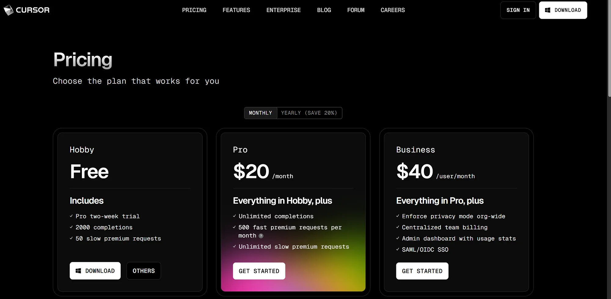 Cursor AI 定价 — 它真的值吗?深度解析我过去一个月的使用情况medium.com这是我的起步价,Cursor 的专业版本每月只需 20 美元。