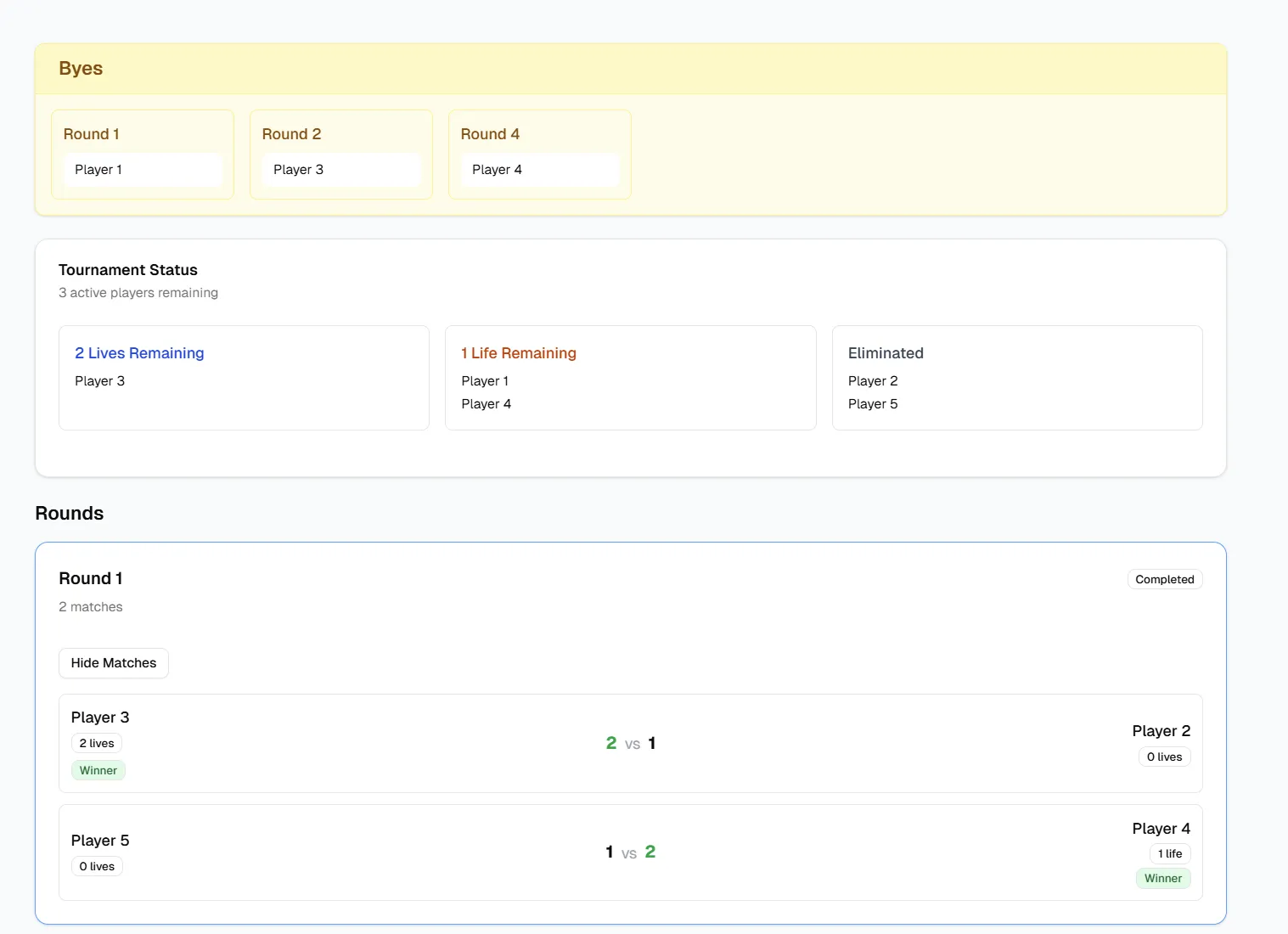 我正在为一场比赛建立一个双重身份淘汰机制。