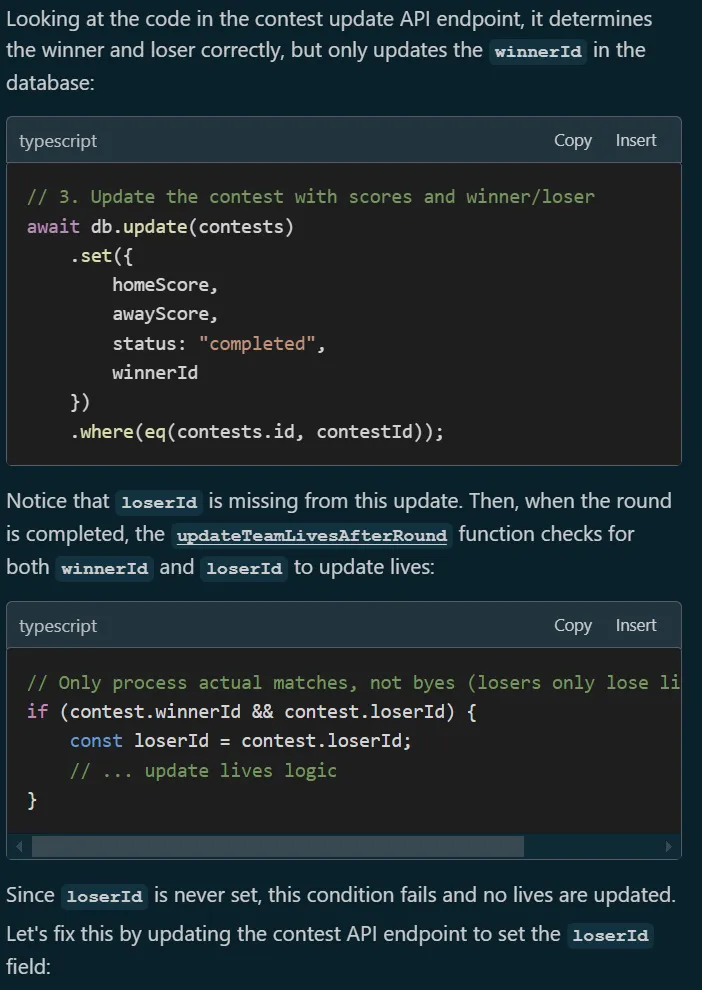 Cursor缺少这种解释。它花时间解决这个问题,并指出问题所在。我喜欢它说注意loserid在这次更新里缺失,而不是像黑箱那样直接搞定所有。