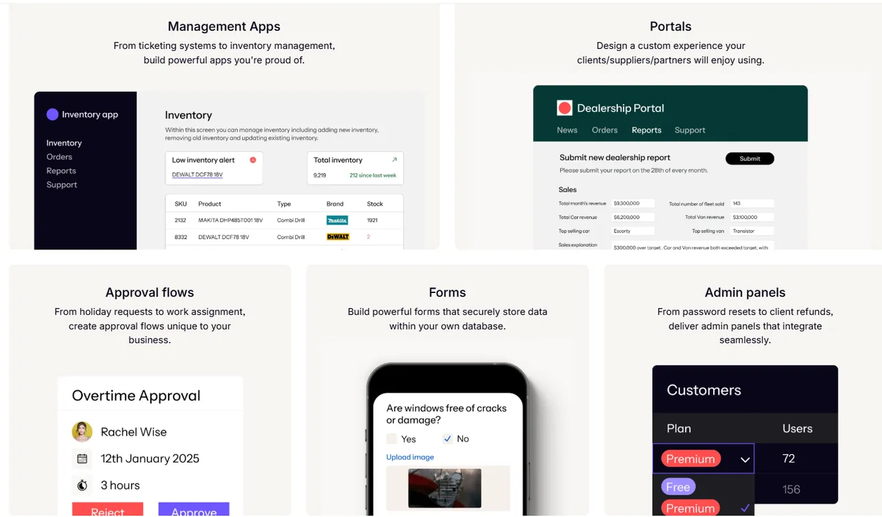企业内部的开发团队、中型和小型企业以及自由职业开发者,特别适合快速构建内部管理系统、仪表板和数据录入系统等。