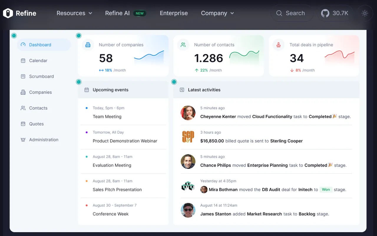Refine 非常灵活,但是这种灵活性也意味着需要一定的 React 基础。完全没有编程经验的新手可能需要花费更多时间来上手。而且,特别是当项目非常简单(例如只是构建一个小表单应用)时,Refine 可能有点过于复杂了。