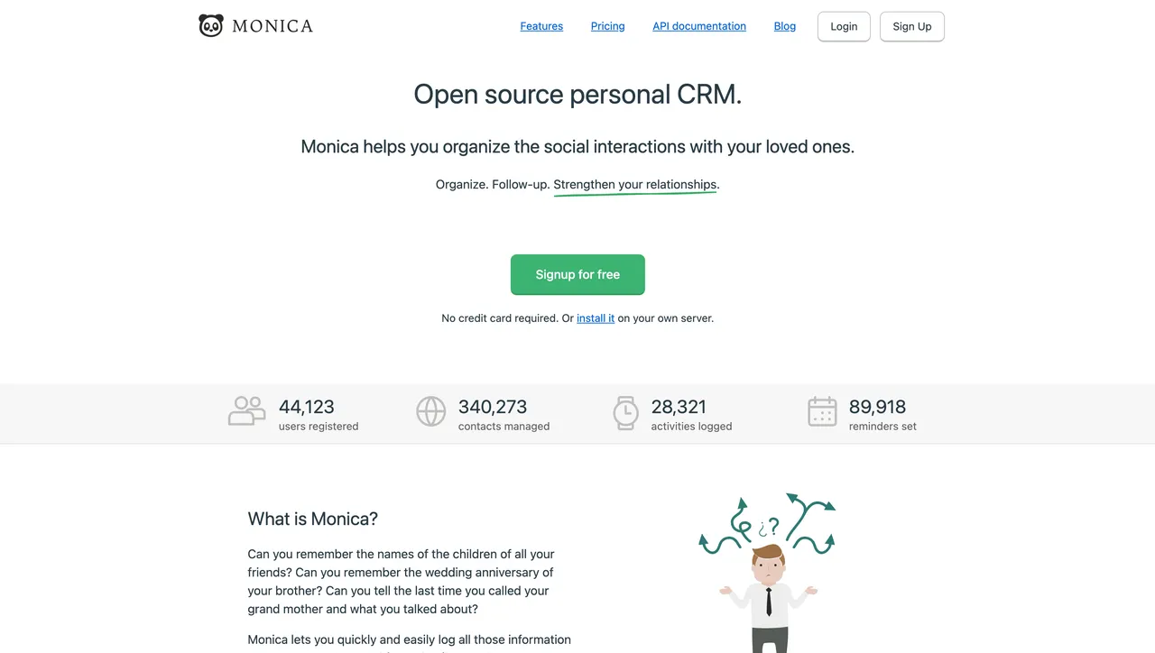- 官方提供托管的 SaaS 版本(“Monica Cloud”),但自行托管的用户仍然可以享受所有功能并且可以访问完整的开源代码库。