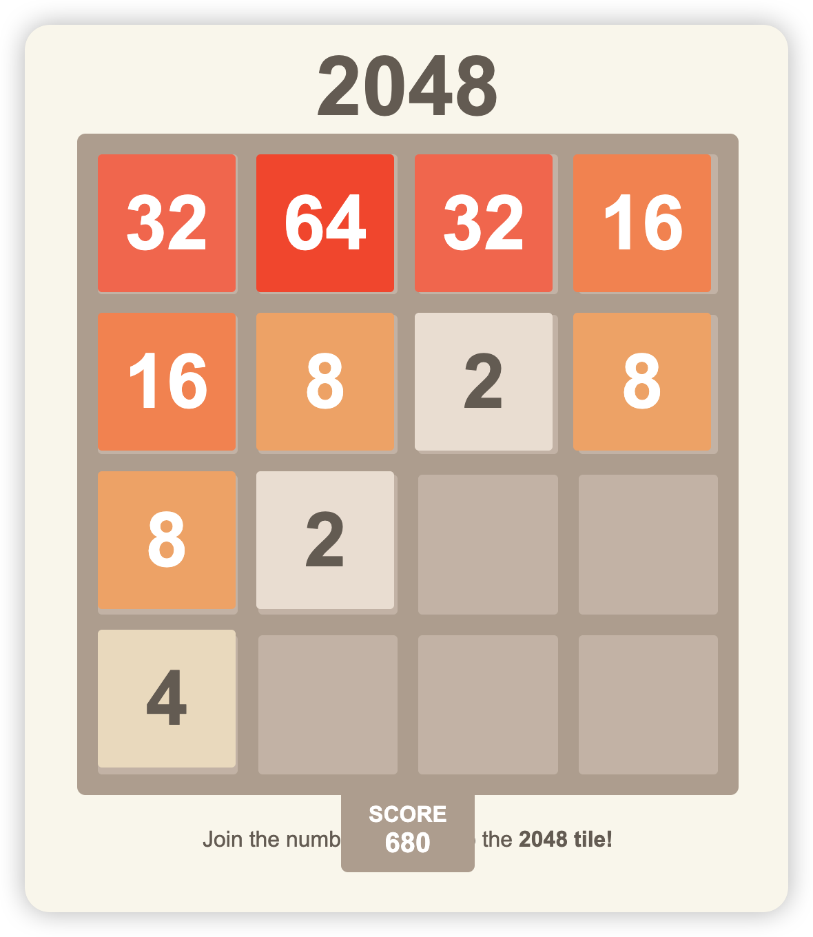 现在可以畅玩 2048 游戏了。