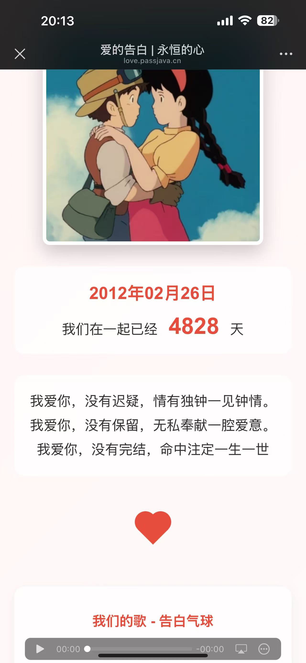 纪念日是我和我老婆确定恋爱关系的一天。背景音乐是我求婚时唱的歌曲。