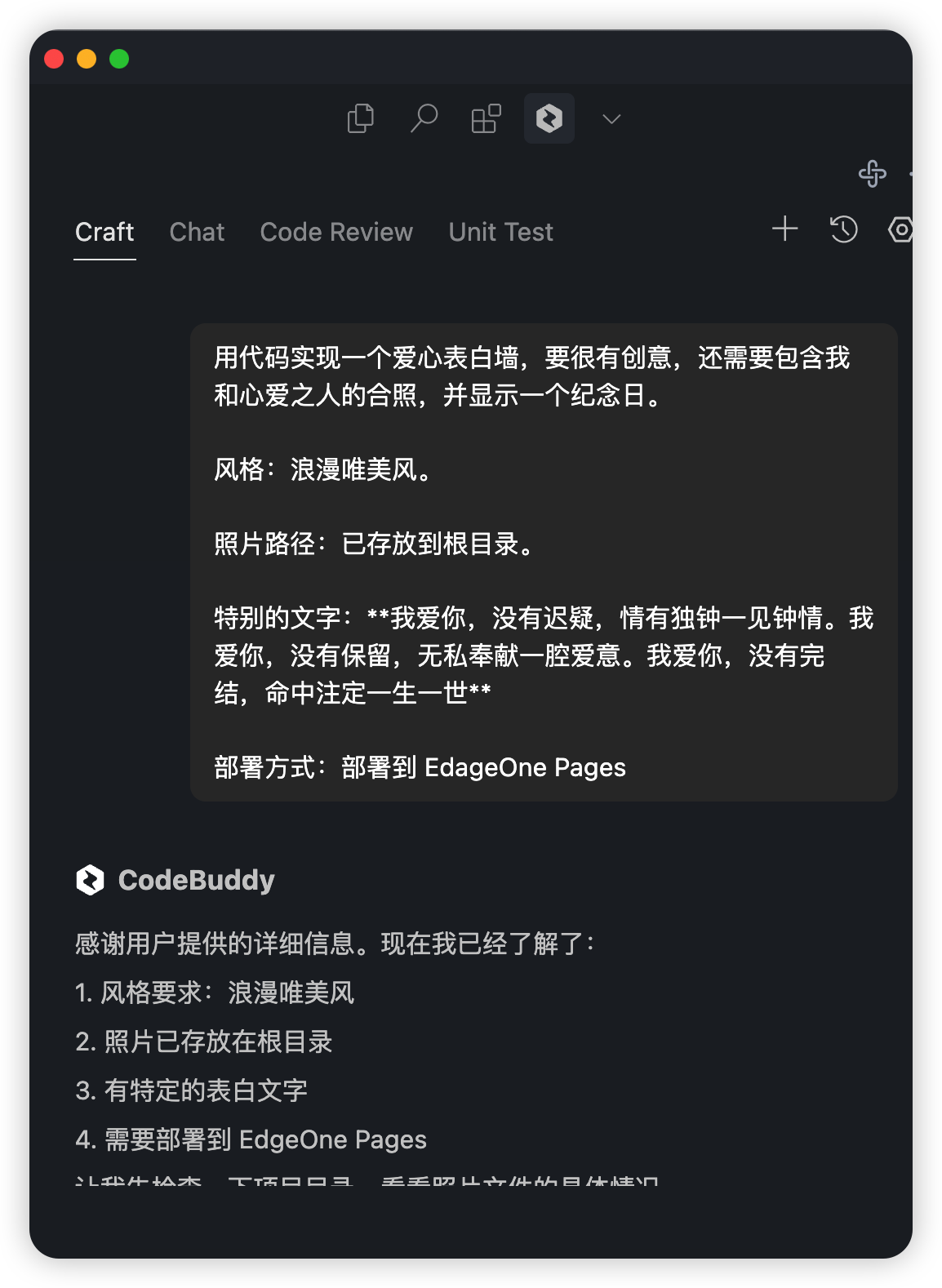通过 CodeBuddy 帮我快速搭建前端页面是非常快的,把我们的诉求交给它,它总能帮我们实现。然后替换下自己想要的素材,部署到网站,配置下nginx 和域名解析,就能快速上线一个网站。