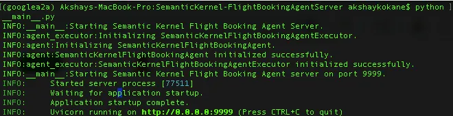 logger.info("正在启动Semantic Kernel航班预订代理服务器,监听端口9999.")