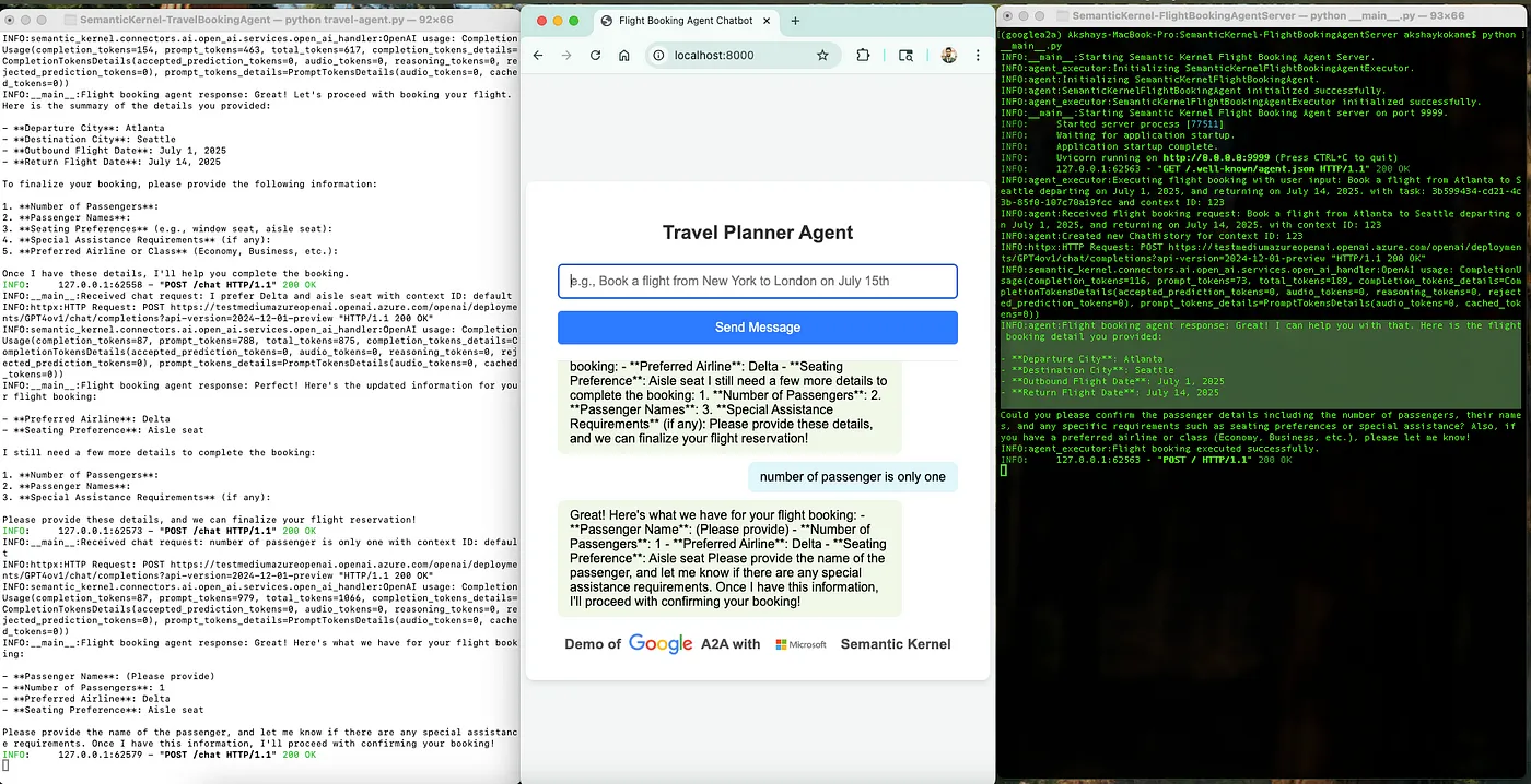 结束了这个指南带领你走过了利用Microsoft Semantic Kernel创建代理,并通过Google A2A实现代理间的无缝通信来构建多代理系统的流程。我们展示了如何将Flight Booking Agent