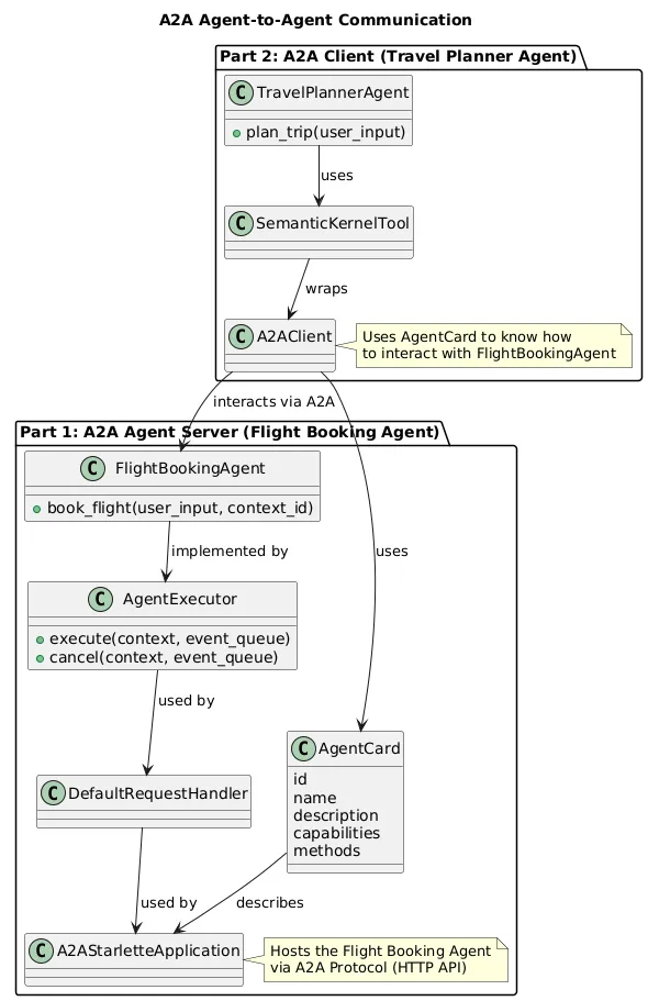 设置为A2A客户端,展示了这些独立实体(如代理)如何有效地协作来管理复杂的任务(如行程规划)。