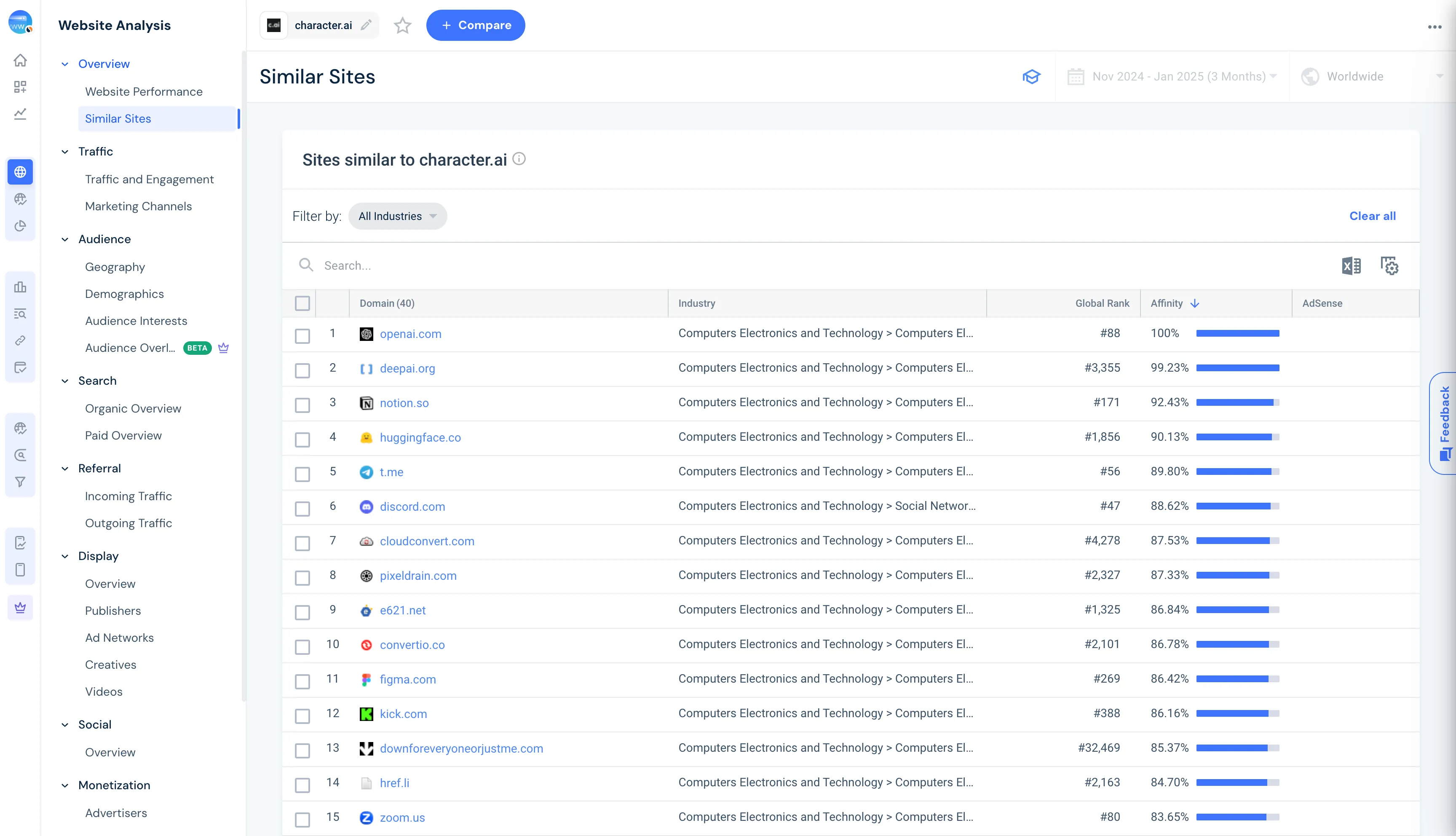 但此时我们需要有数据进行对比(单个数据无法形成坐标系),我们可以拿一些产品进行对比,如果本身对行业不太熟悉可以点击上图的Similar Sites