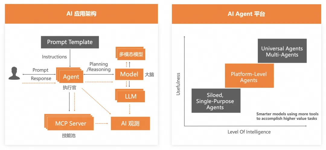 5. 端到端的全景可观测: 以 MCP,A2A 等标准协议连接智能载体,以 OpenTelemetry 等开放标准点亮“智能黑盒”,提供企业级的运维能力。