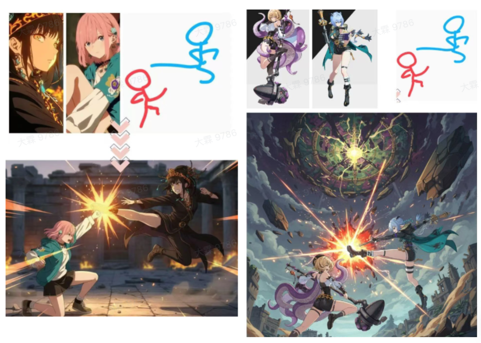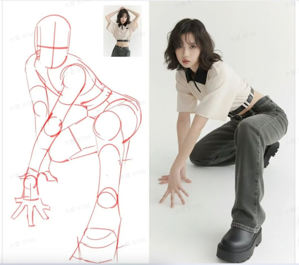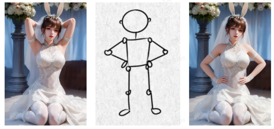 保留图片1中人物的原始风格,但摆出图片2中的姿势,姿势完全一样