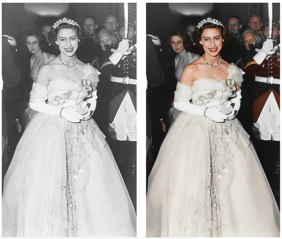 黑白照片专业上色,色彩遵循现实逻辑(如皮肤为自然暖米色、黑发偏深棕、白色衣物带轻微米白调),避免过饱和与色彩溢出;保留黑白照片的细腻质感,不破坏原有光影层次(阴影处色彩偏暗但不浑浊,高光处柔和不刺眼);整体色调协调统一,呈现 “自然不刻意” 的上色效果,仿佛原图即为彩色胶片拍摄。