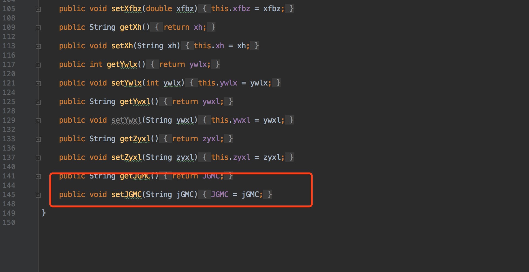 如图,找不到setJGMC方法。