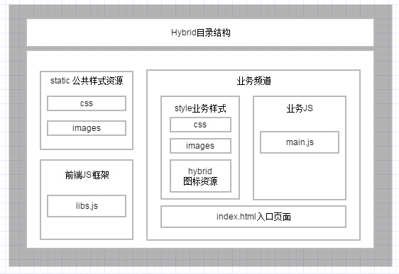 Hybrid技术既然是将静态资源存于Native,那么就需要目录设计,经过之前的经验,目录结构一般以2层目录划分: