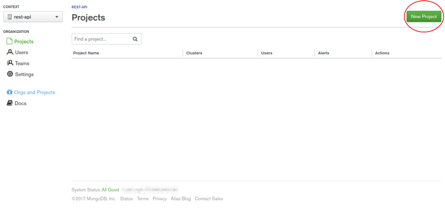 MongoDB非常重视权限和安全性,因此Atlas将向您显示另一个管理权限页面。我们现在可以跳过它,然后创建项目。