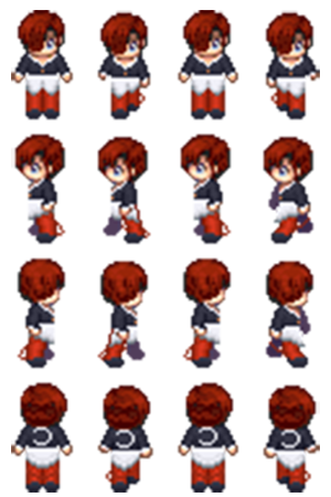 下图是一个游戏角色的 PNG 图像,其中包含使角色看起来像是在四个不同方向行走所需的所有帧。