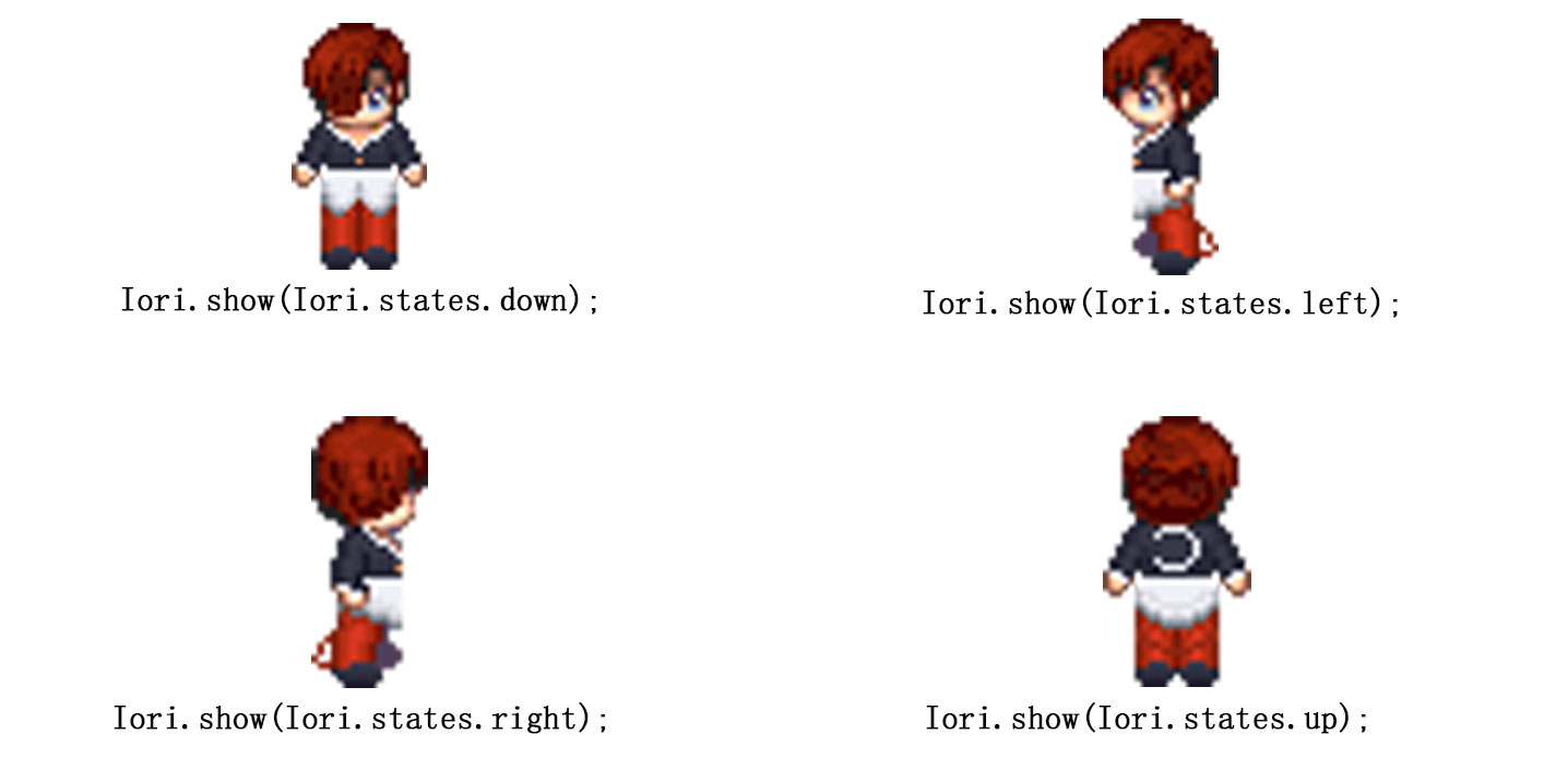 接下来就是使用精灵的 show 方法来显示正确的状态。例如,以下代码展示如何显示精灵的 left 状态: