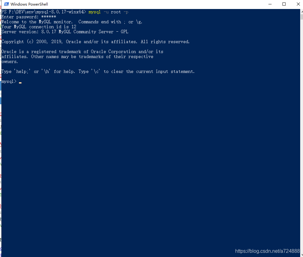 2019-08-24T11:55:45.353166Z 0 [System] [MY-013170] [Server] F:\DEV\env\mysql-8.0.17-winx64\bin\mysqld.exe (mysqld 8.0.17) initializing of server has completed