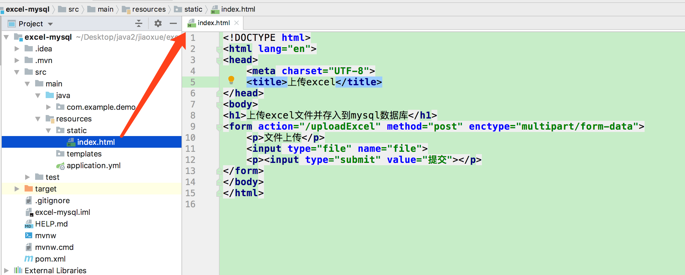 <h1>上传excel文件并存入到mysql数据库</h1>