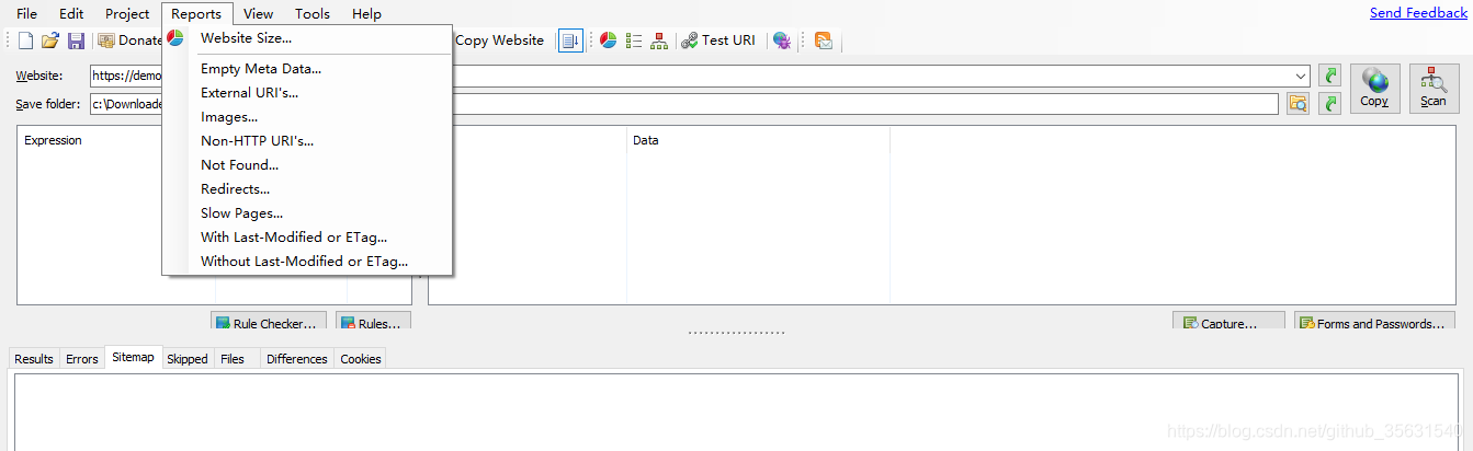 这个软件的其他菜单,这个工具还是很强大的,可以自定义正则表达式来过来url,资源,还可以把爬取任务保存起来,以便再次使用,