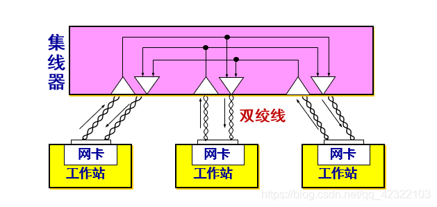 100BASE-T 在双绞线上传送 100 Mbit/s 基带信号的星形拓扑以太网,仍使用 IEEE 802.3 的CSMA/CD 协议。