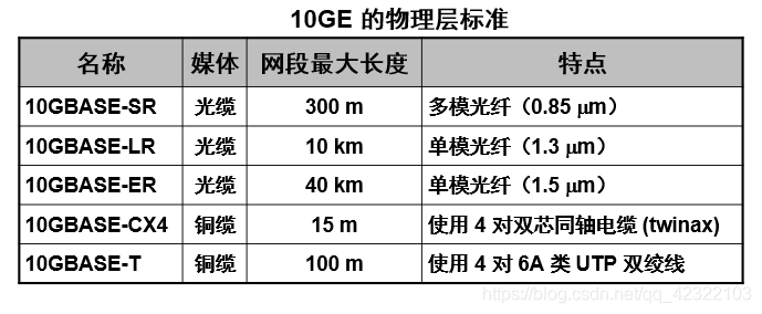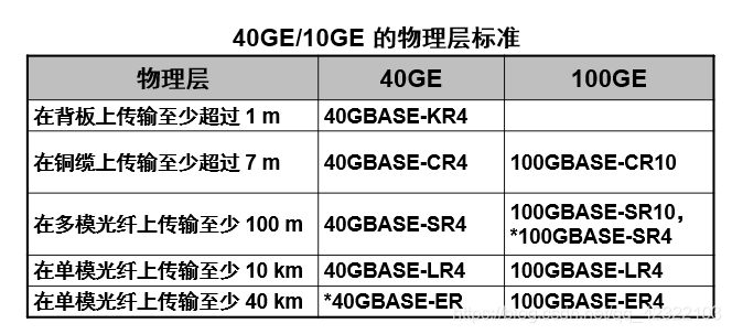 在 10GE 之后又制订了 40GE/100GE(即 40 吉比特以太网和 100 吉比特以太网)的标准 IEEE 802.3ba-2010 和 802.3bm-2015。