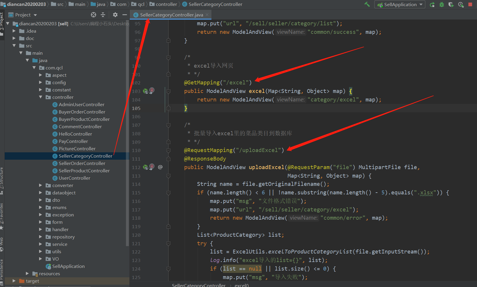 上面的工具类封装好以后,我们接下来就需要在对应的Controller类里添加导入数据的方法了。