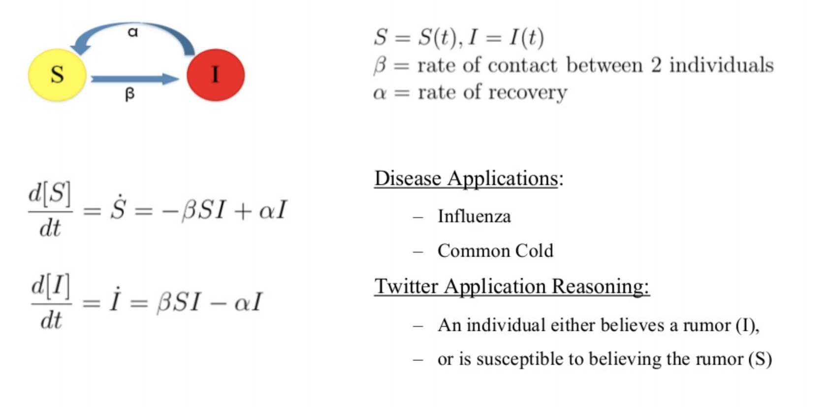 流感模型:易感节点被感染节点然后愈合并变为 再次易感假设完美混合(完整图表):