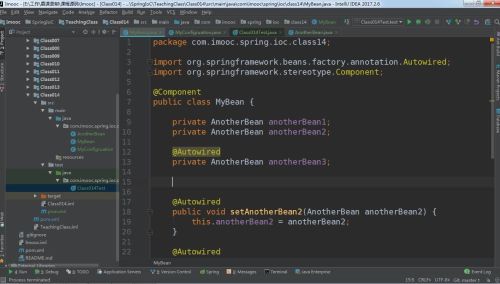 通过属性直接注入bean,直接在属性上加入@Autowired,包括没有get和set方法,并且是private类型,这种也是可以的