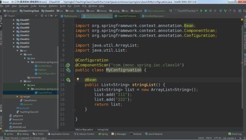 在Configuration类中对应的list方法加上@Bean注解,使其交由spring来管理。然后在需要它的地方加入@Aurowired来注入。