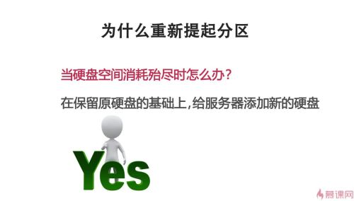 - 当硬盘空间耗尽时 在保留原有硬盘的基础上 给服务器添加新的硬盘