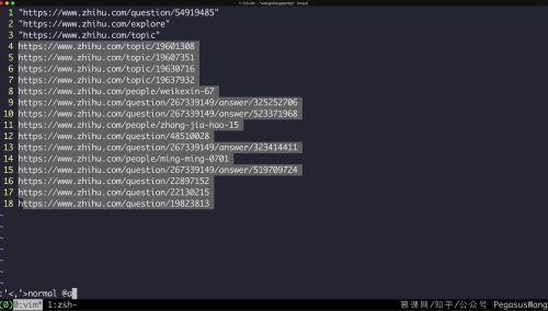 批量回放:j→V→G→ : →normal→@a 回车,在剩下的行中回放录制的宏