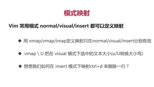 map映射存在递归问题, 为解决该问题,构建了非递归映射, nnoremap ---normal下的非递归映射, n --normal, non-recursive 非递归, map---映射;vnoremap --视图模式非递归映射, inoremap ---插入模式非递归
