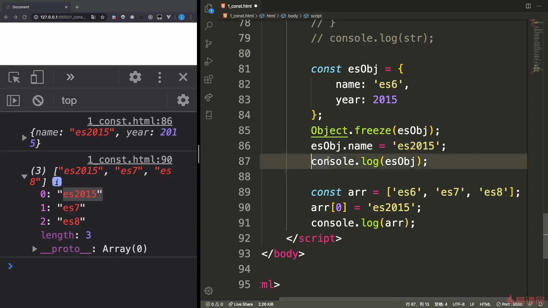 Object.freeze()冻结属性,浅冻结