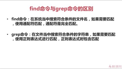 grep是在文件中搜索符合条件的字符串,是包含匹配,find是完全匹配。