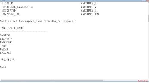 1. dba_tablespaces和user_tablespaces默认表空间共六个