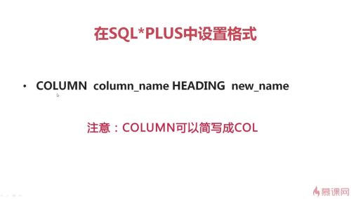 COLUMN/COL column_name FORMAT dataformat【数据显示的格式】、如果是字符形式 开头用a表示 如a10