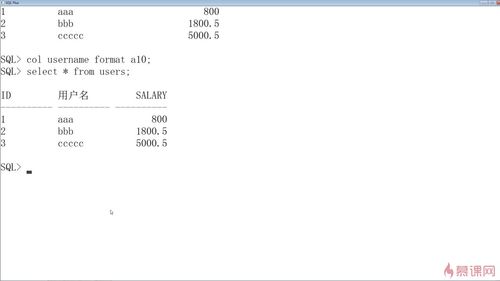 举例:如图用户名可能创建表的时候分配的比较长,这里通过设置数据显示格式,来减小的它的显示长度,设置字符型的格式,以a开头,后面写的是它的长度。