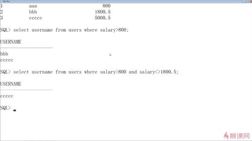 select username from users where salary > 800 and salary <>1800.5;查询语句时使用逻辑运算符