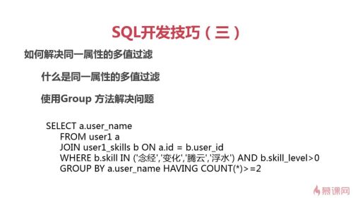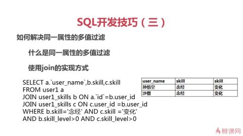 select a.user_name,b.skill,b.skill_level from user1 a join user1_skills b on a.id=b.user_id where skill in ('变化','念经') and skill_level>0; select a.user_name,b.skill,c.skill from user1 a join user1_skills b on a.id=b.user_id and b.skill='变化' join user1_skills b on a.id=b.user_id and b.skill='念经' where b.skill_level>0 and c.skill_level>0;