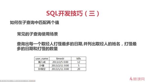 SELECT a.user_name,b.timerstr,kills FROM user1 a JOIN user_kills b ON a.id=b.user_id WHERE(b.user_id,b.kills) IN( SELECT user_id,MAX(kills)