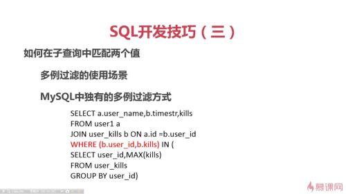 在子查询中实现多列过滤