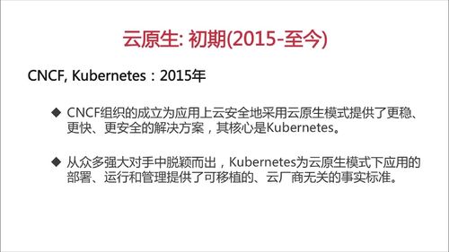 2015年云原生计算组织CNCF成立,该组织旨在利用专家经验精心选择应用上云的解决方案和相关组件,包括容器管理编排调度引擎,分布式应用的网络存储、监控、跟踪、日志跟踪组件、微服务间的交互协议、微服务的服务治理、服务网格等,CNCF的成立为推动应用上云安全地采用云原生模式提供了更稳、更快、更安全的解决方案,其核心是Kubernetes。