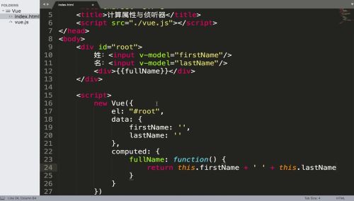 以下例子中fullname作为一个计算属性。